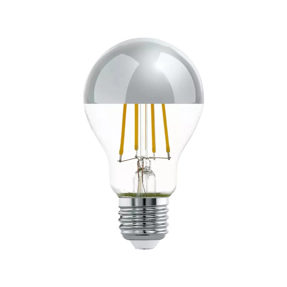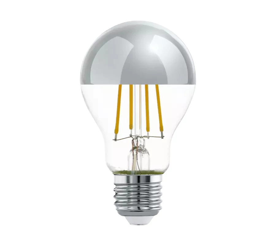 E27 foglalatú, 7W filament LED égő, ezüst félgömb, meleg fehér, 115 Lm/W