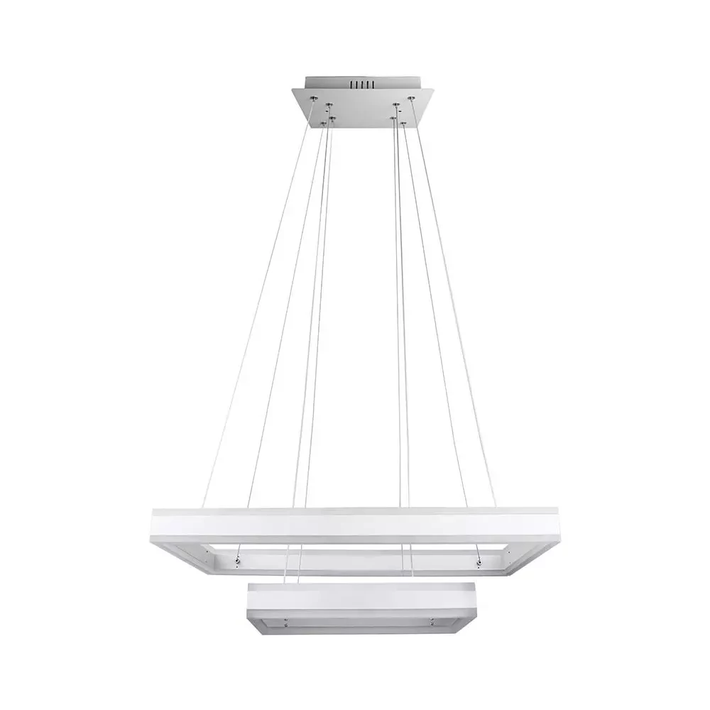 Soft LED chandelier light with 2 square and dimmable integrated LED light, Acrylic and aluminium body