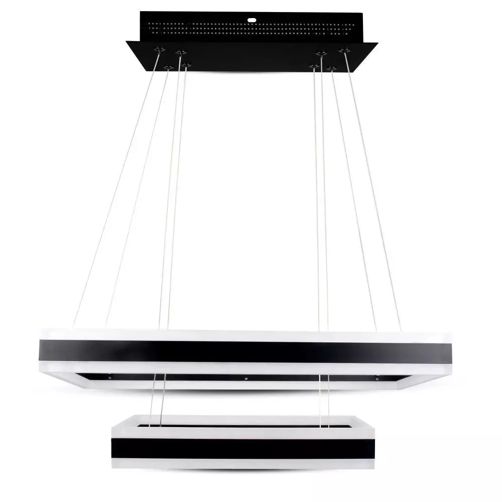 Soft LED chandelier light with 2 square and dimmable integrated LED light, Acrylic and aluminium body