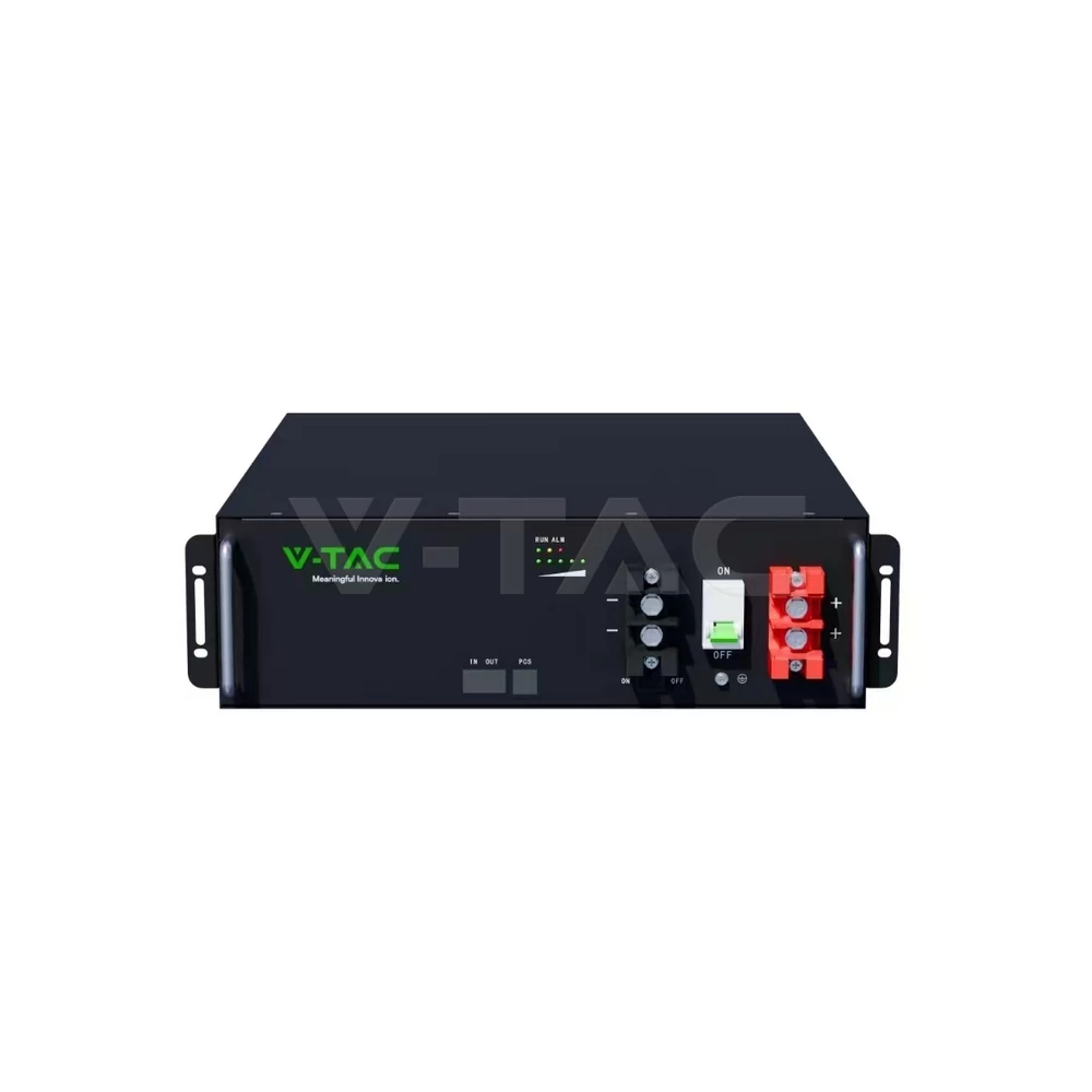 V-TAC 48V 5.12 kWh rack szekrénybe szerelhető bővíthető fekete házas akkumulátor - SKU 12327