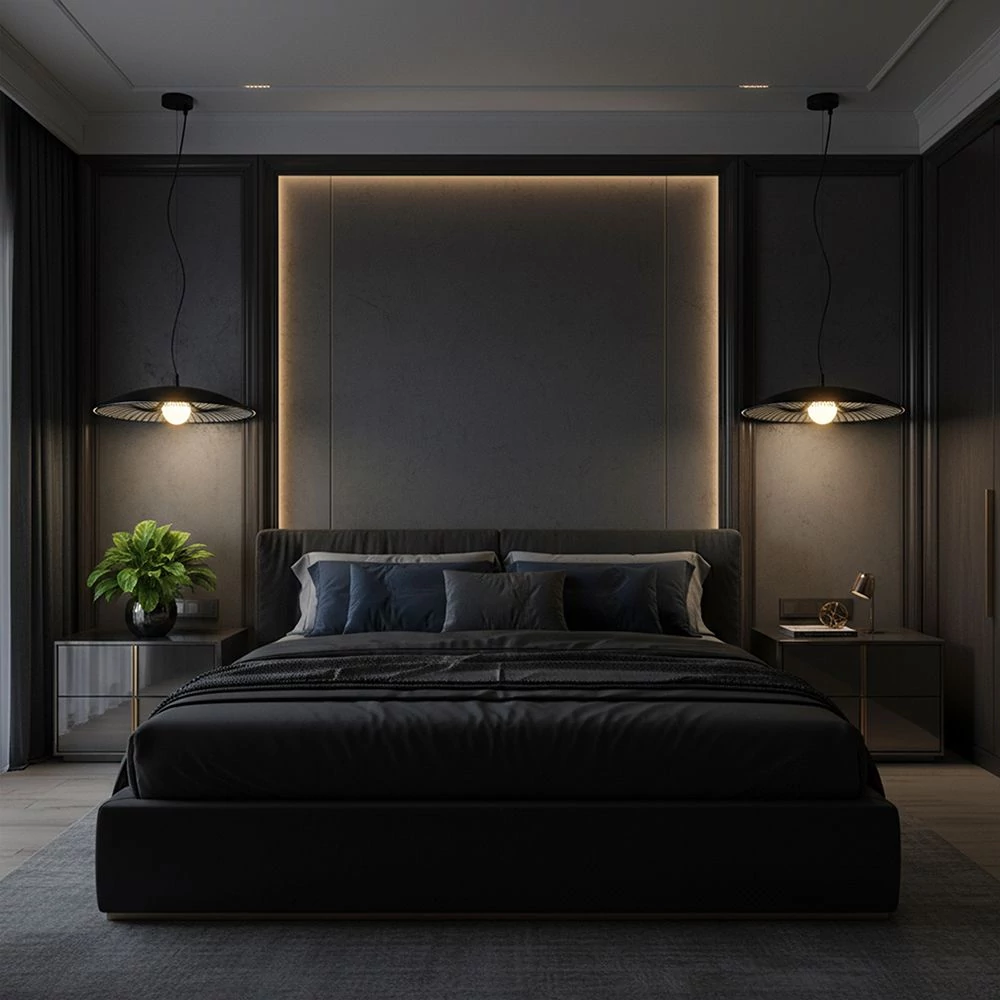 30W LED Surface Smooth Pendant Light Dimmable Black 3000K