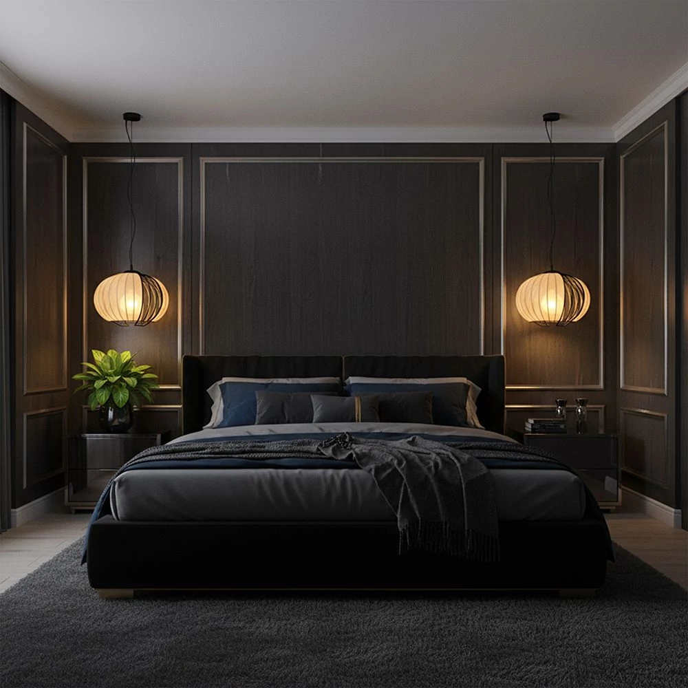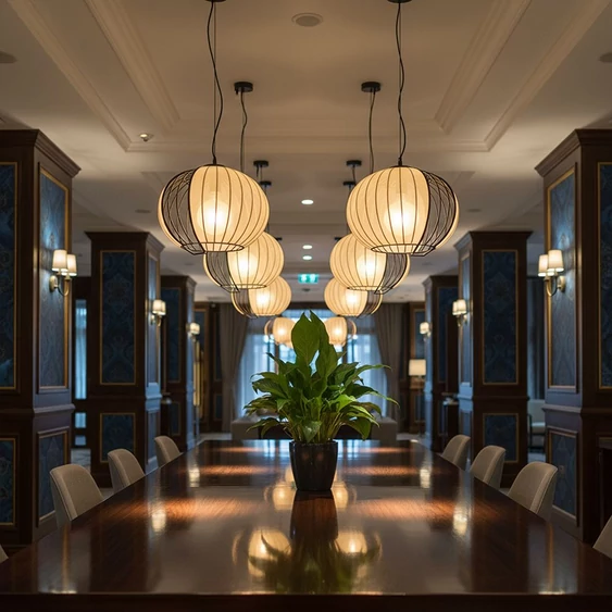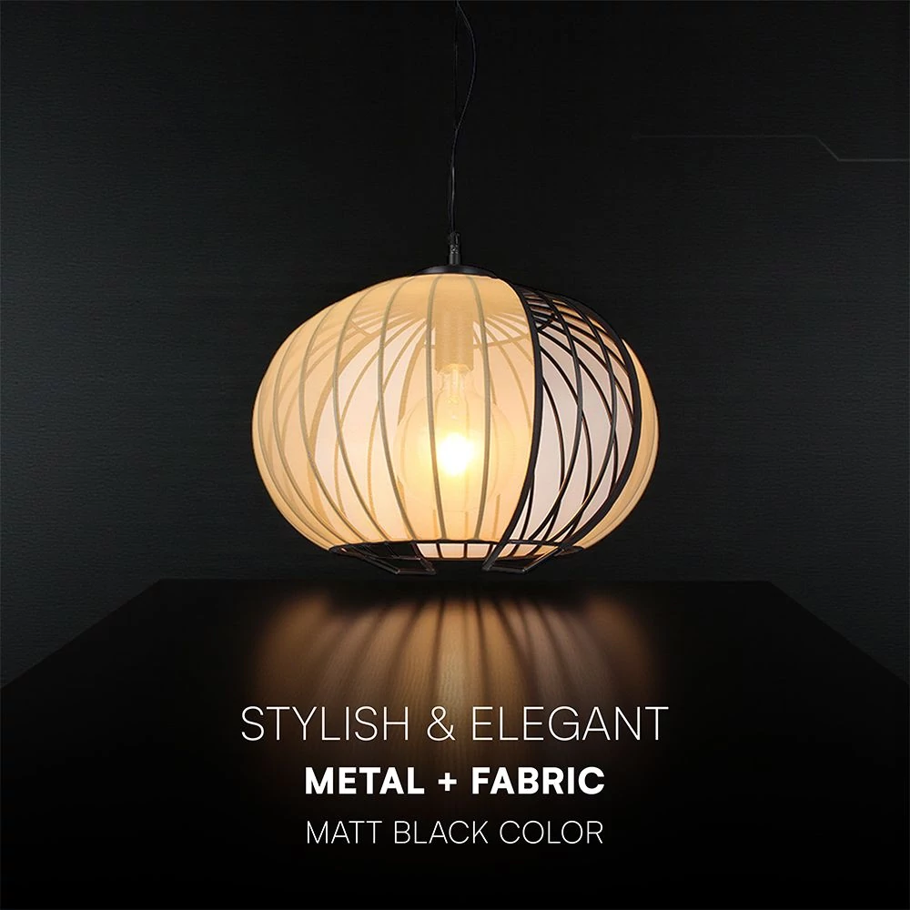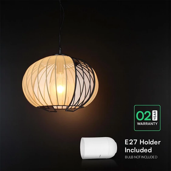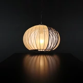 Wooden Pendant Light With Chrome Decorative Cap + Canopy + Lampshade Round D350*H450MM