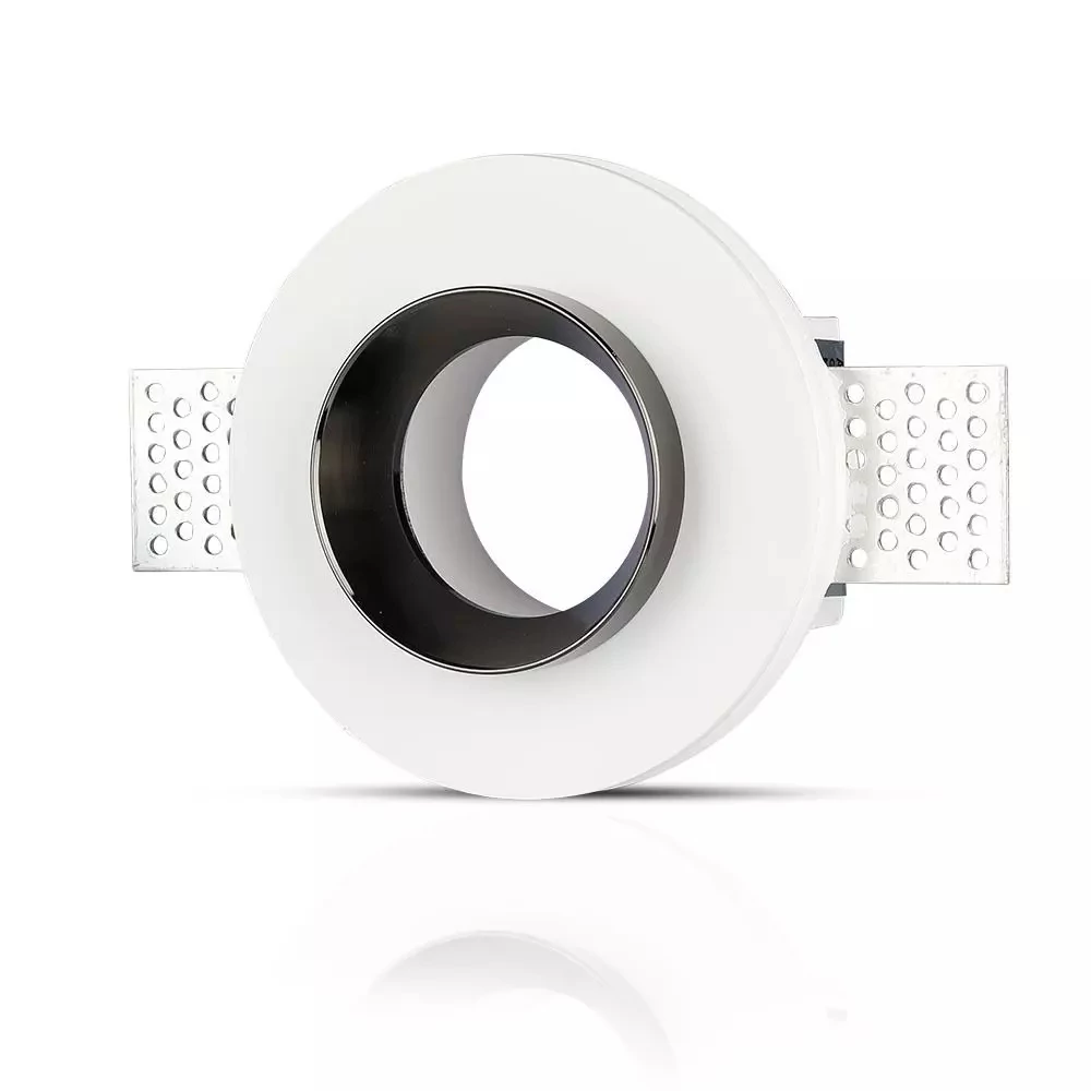 GU10 Fitting Gypsum White Recessed Light With Chrome Metal Round