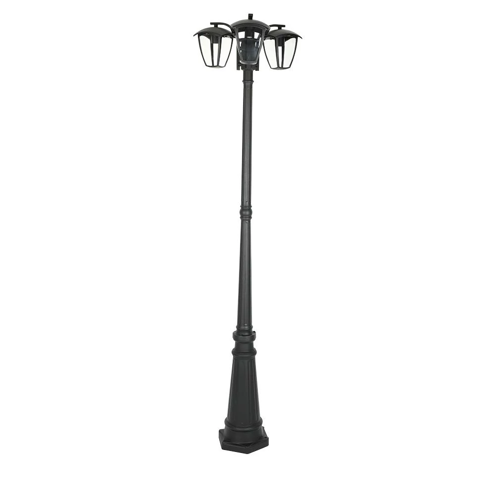 3xE27 pole lamp with 3 head, traditional garden lamp designed to meet modern day requirements, aluminium body with glass, Max 60W rated load