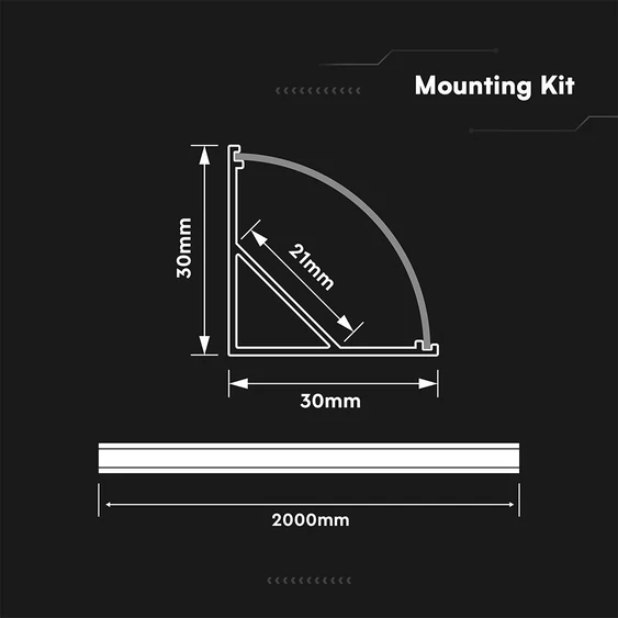 Led Strip Mounting Kit With Diffuser Aluminum Milky Gypsum Corner Round 2000MM